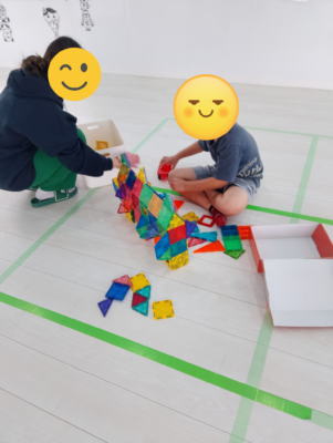 お散歩に出かけたり、積み木やブロックで思い思いの作品を作ったり。