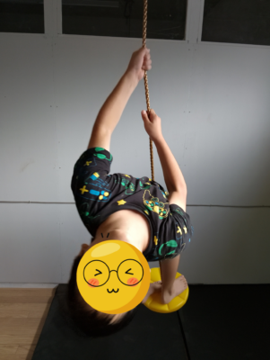 ロープをしっかり握り、体を預けて揺れるスイング。