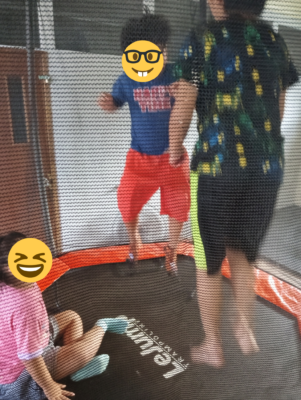スイングに揺られたり、トランポリンで跳んだり、