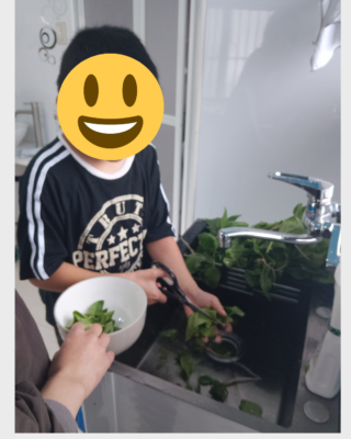 収穫後は、収穫したほうれんそうで野菜ピザ・パスタ作り🌞